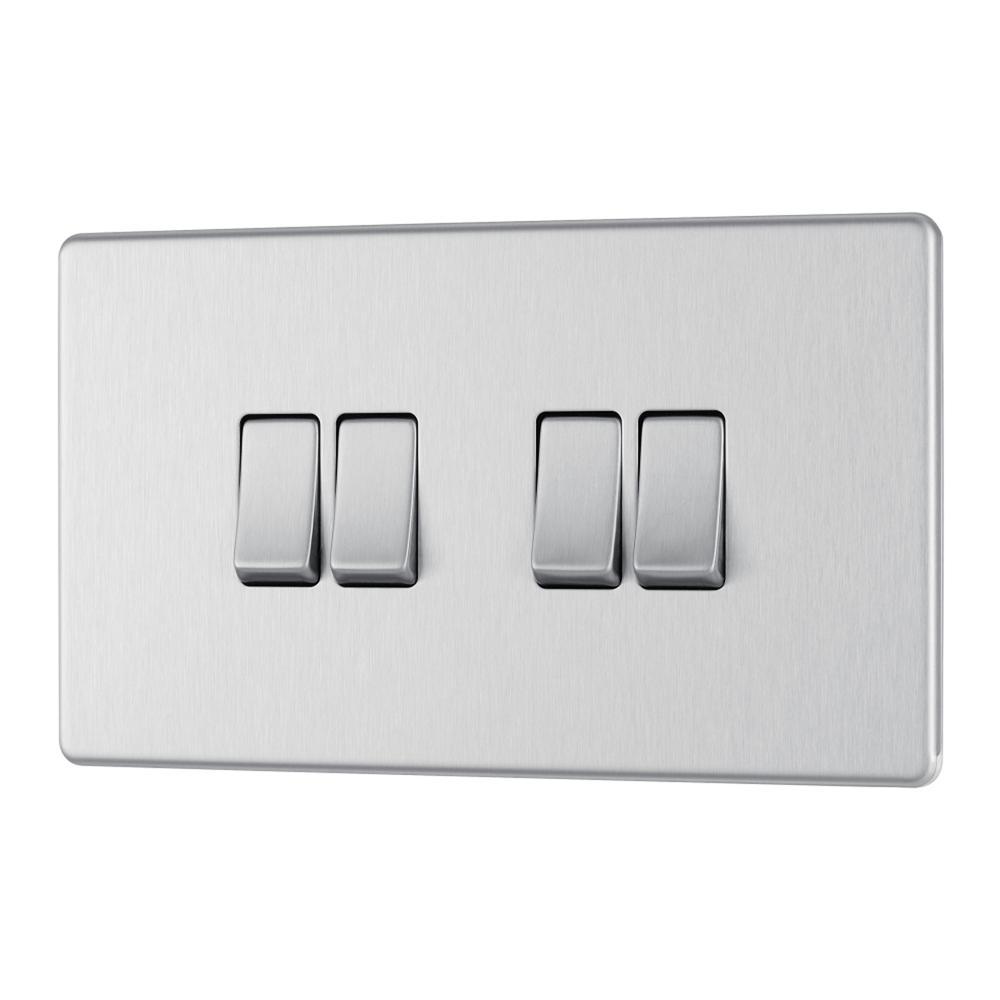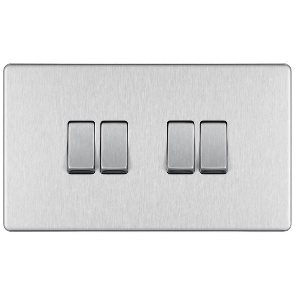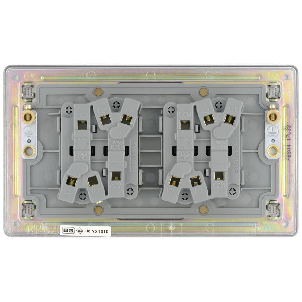 BG FBS44-01 Brushed Steel 10AX 4 Gang 2 Way Plate Switch - Screwless Flatplate.