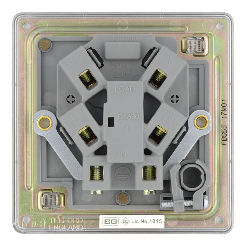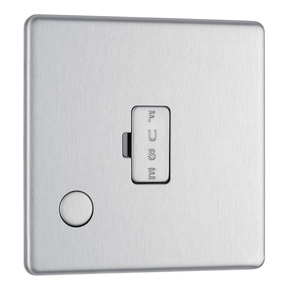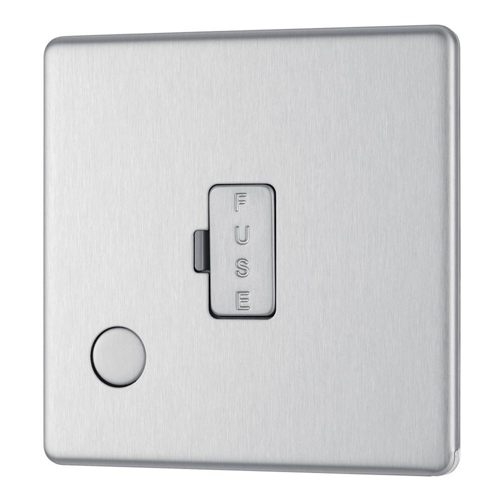 Bg Brushed Steel 13A Fused Connection Unit Unswitched Flex Outlet - Screwless Flatplate