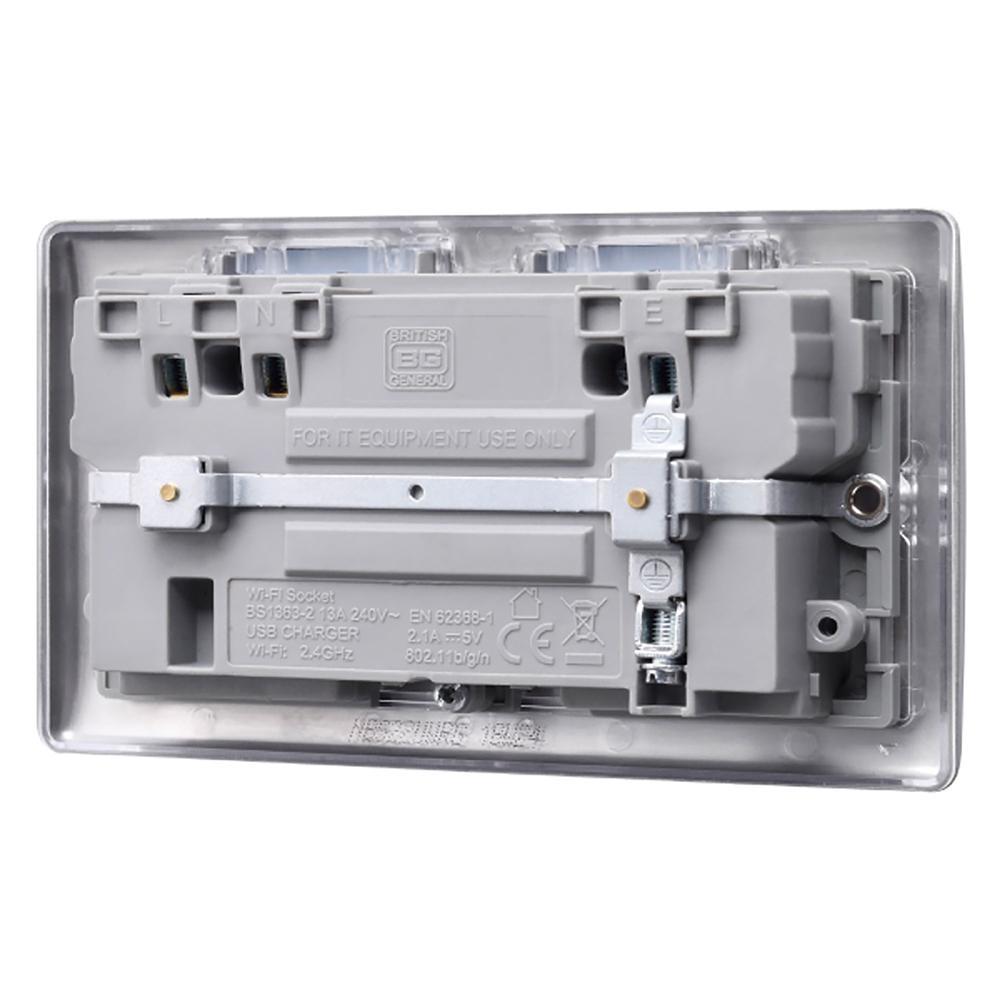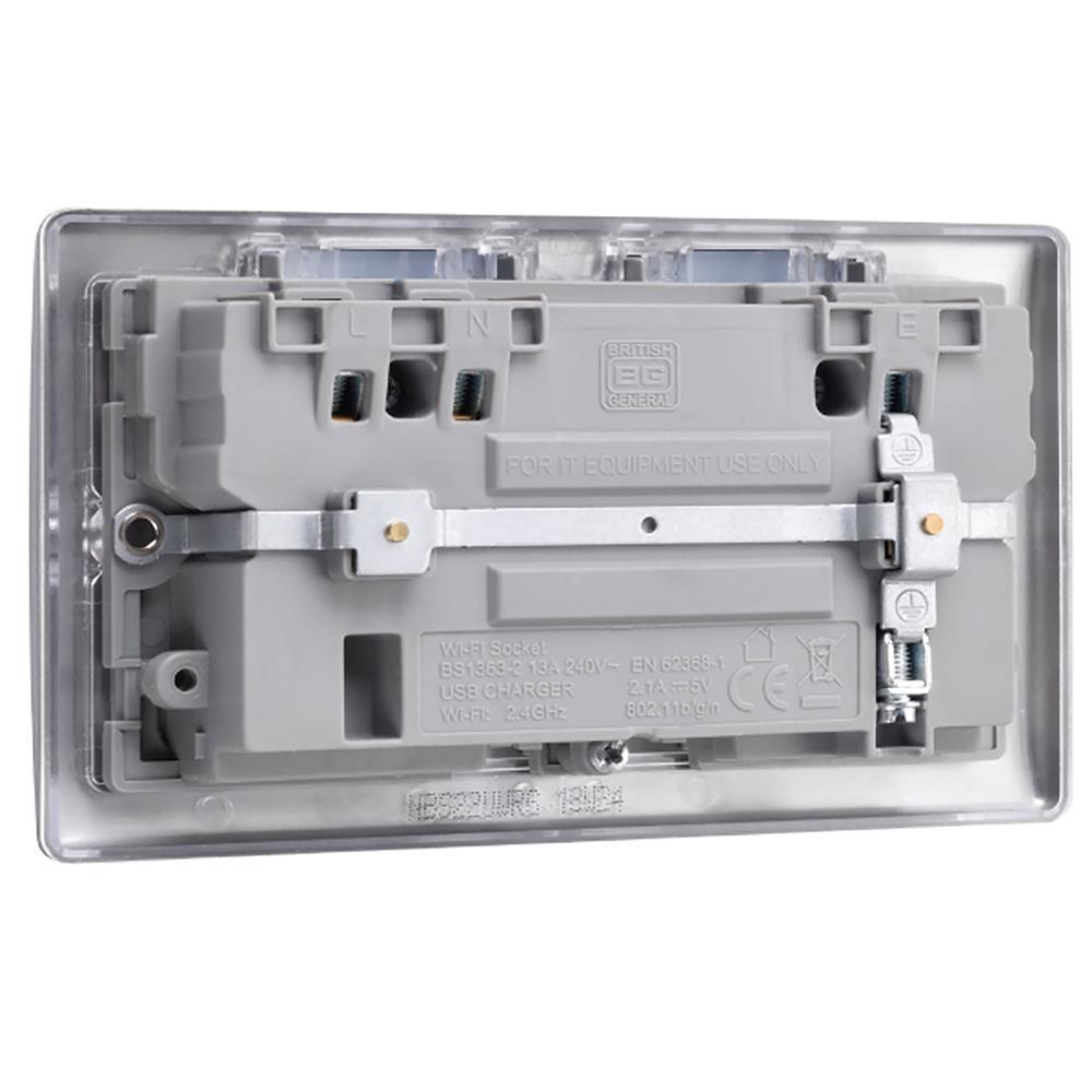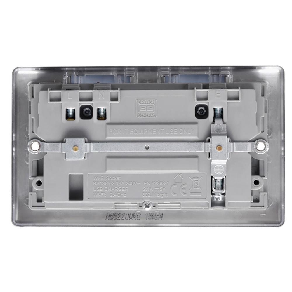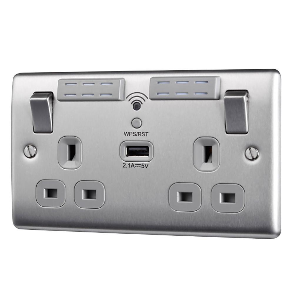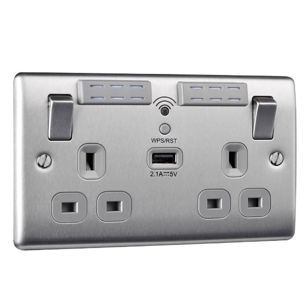 BG Brushed Steel 13A Wifi Socket With USB - NBS22UWRG