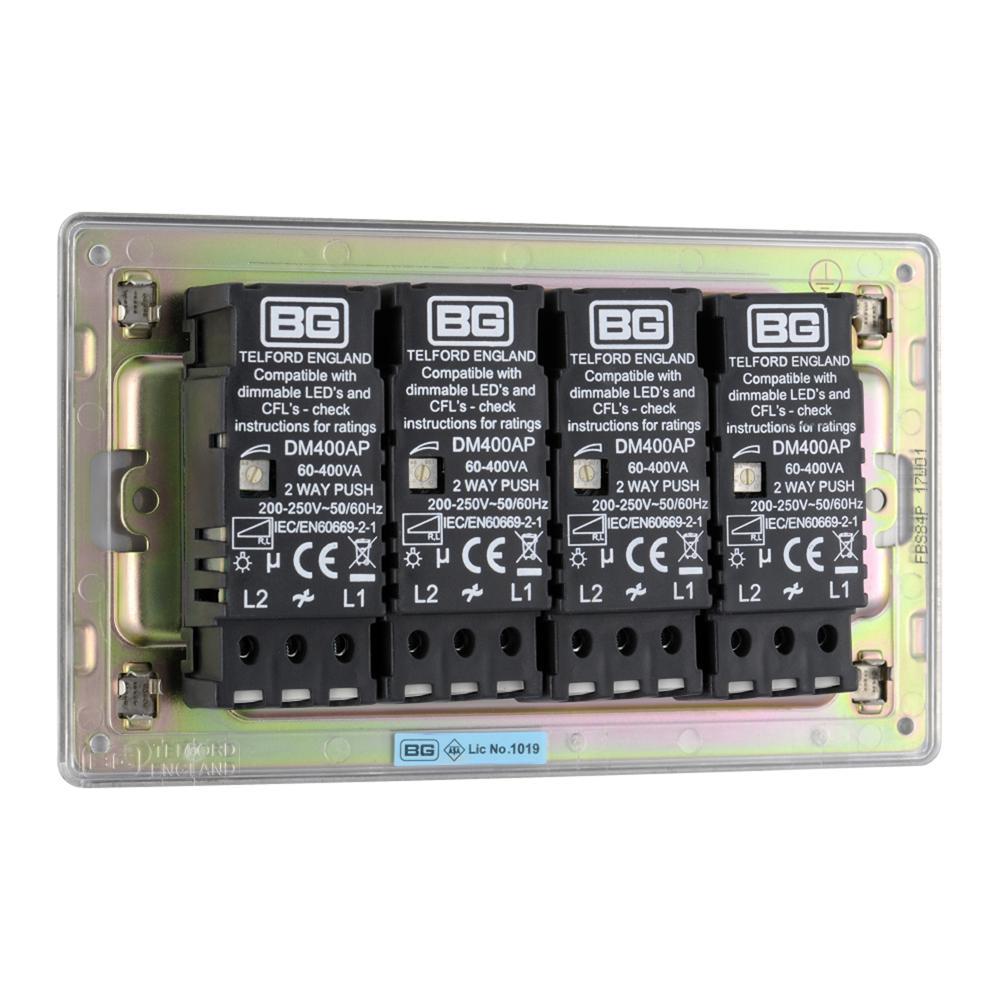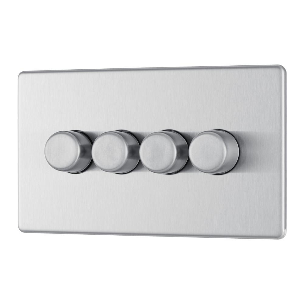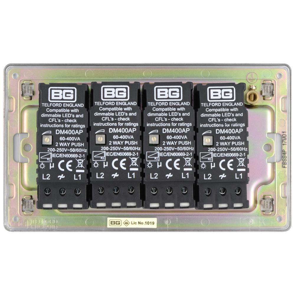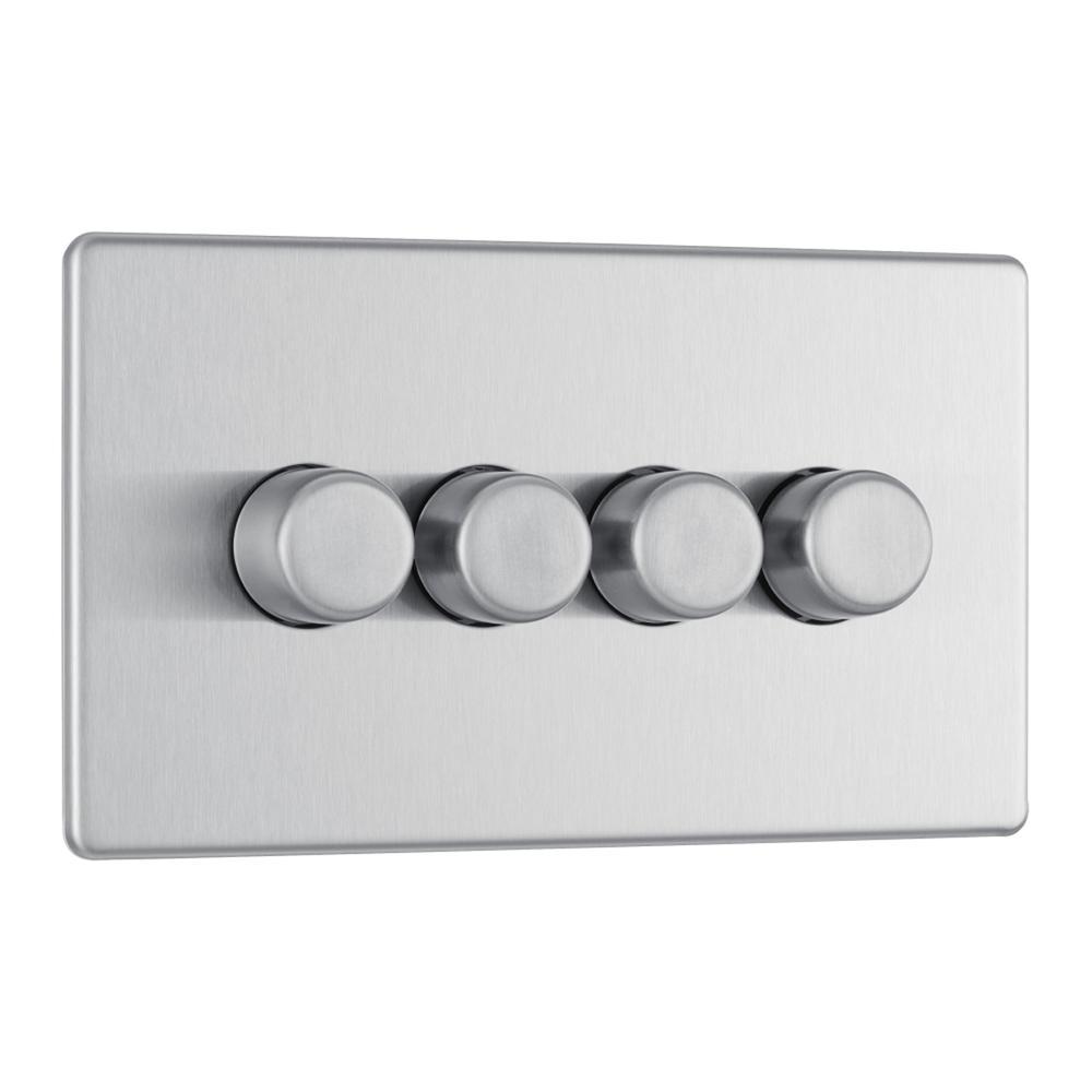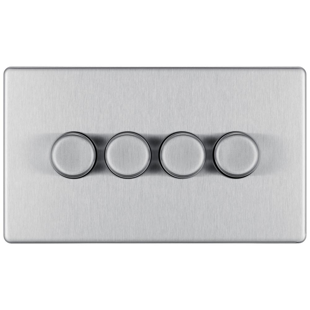 Bg Brushed Steel 400W 4 Gang 2 Way Push Dimmer - Screwless Flatplate