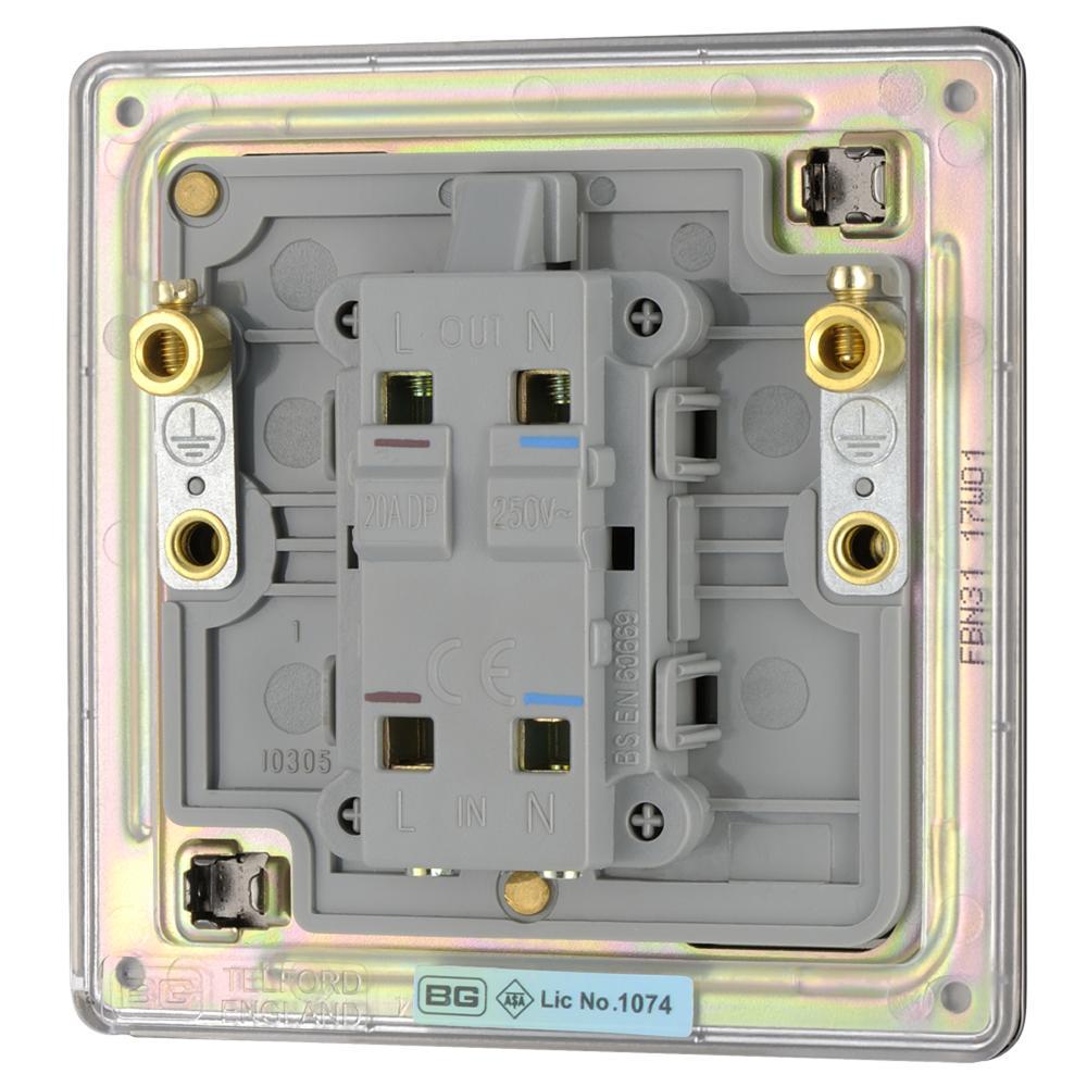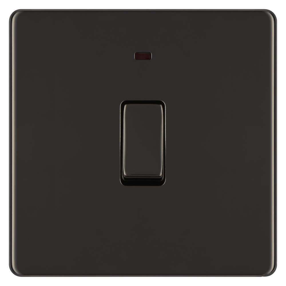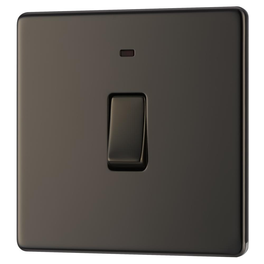 BG FBN31-01 20A Double Pole Switch with Power Indicator - Screwless Flatplate - Black Nickel