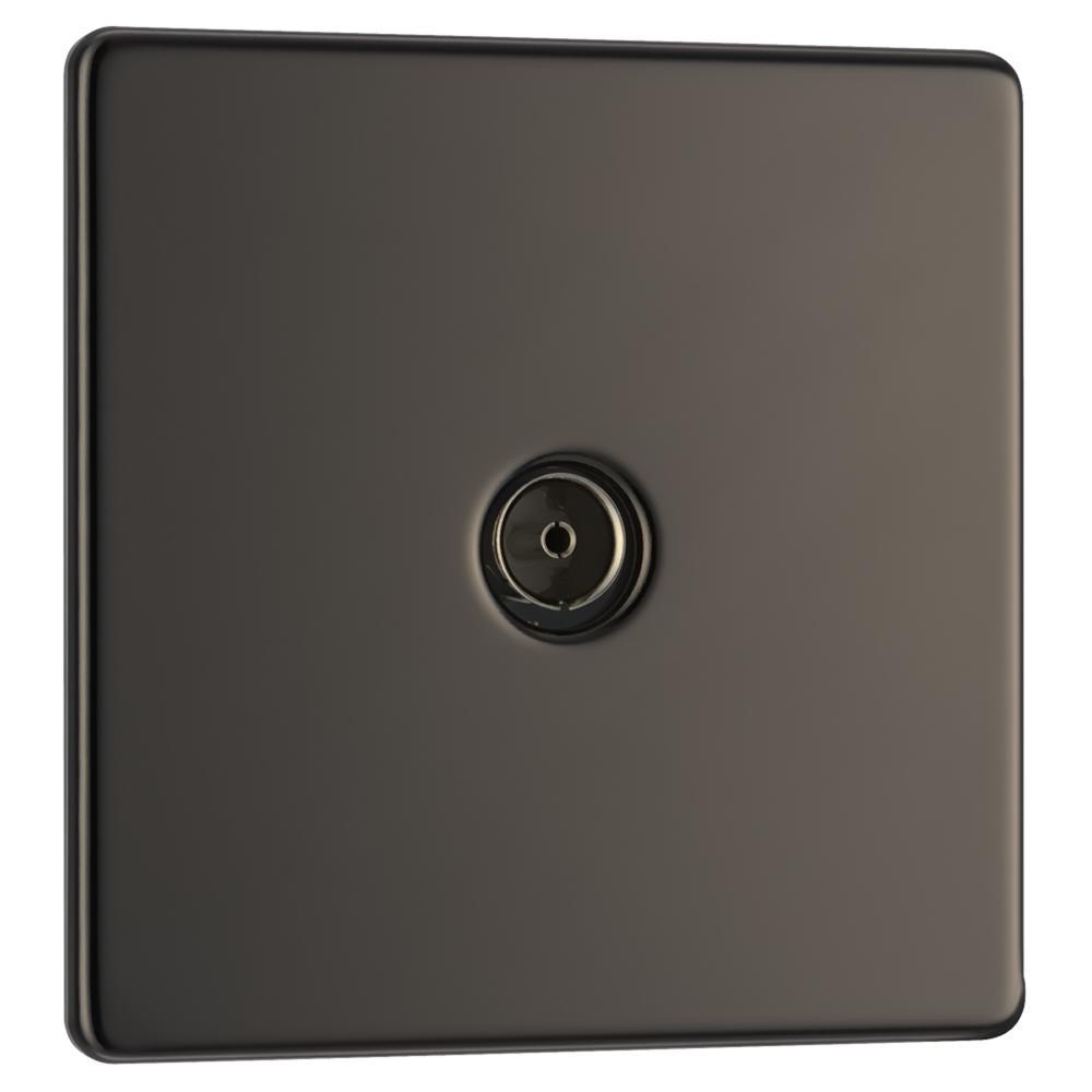 BG FBN60-01 1 Gang Coaxial Socket - Screwless Flatplate - Black Nickel