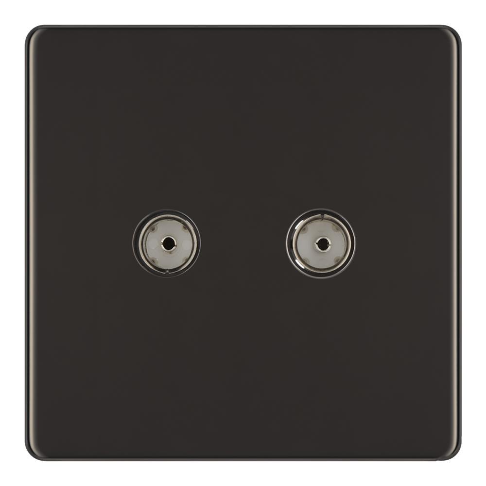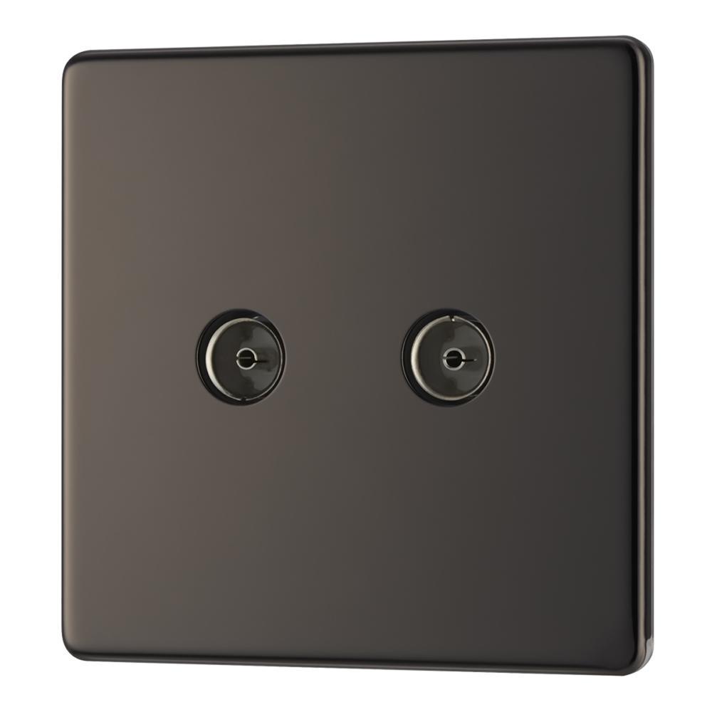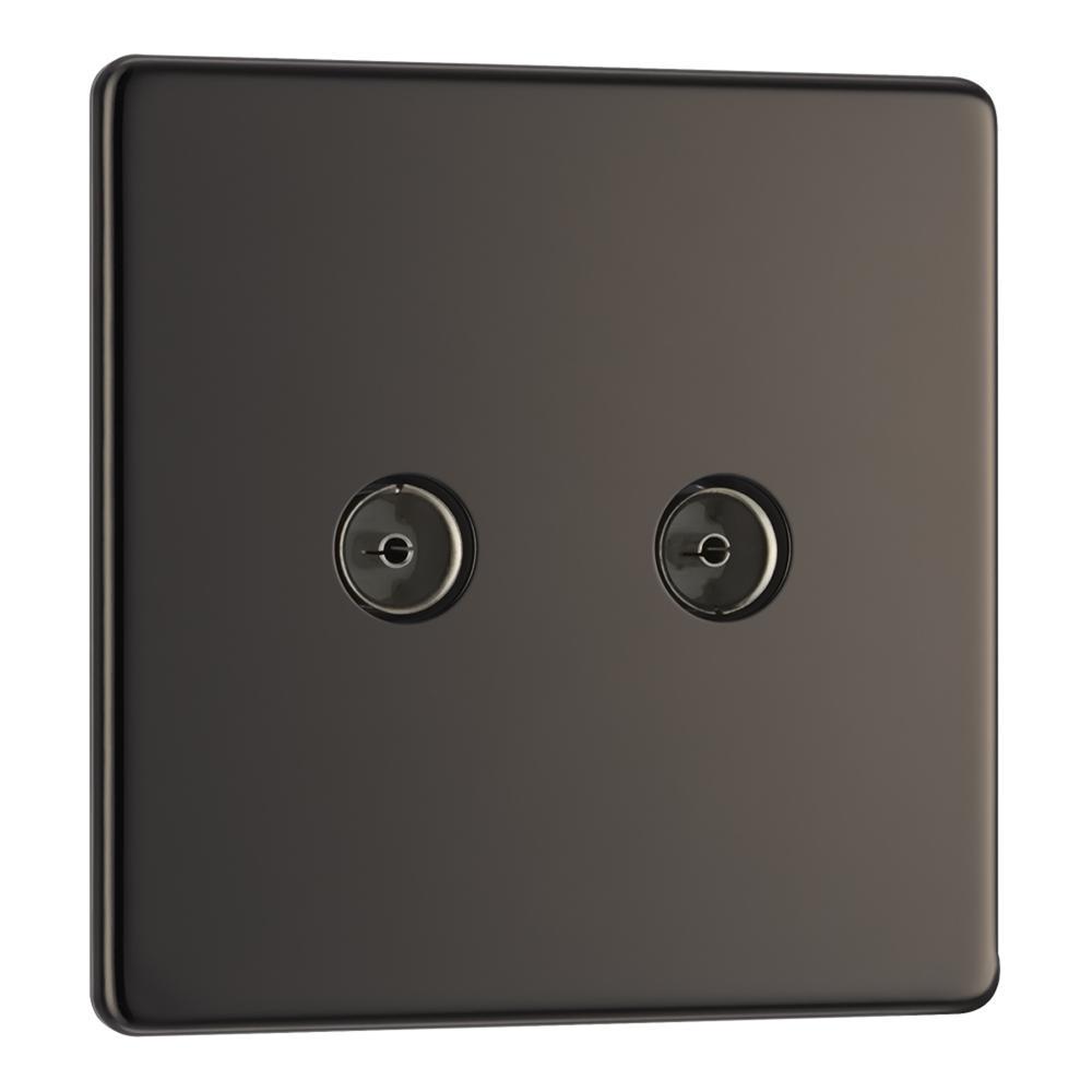 BG FBN61 2 Gang Coaxial Socket - Screwless Flatplate - Black Nickel