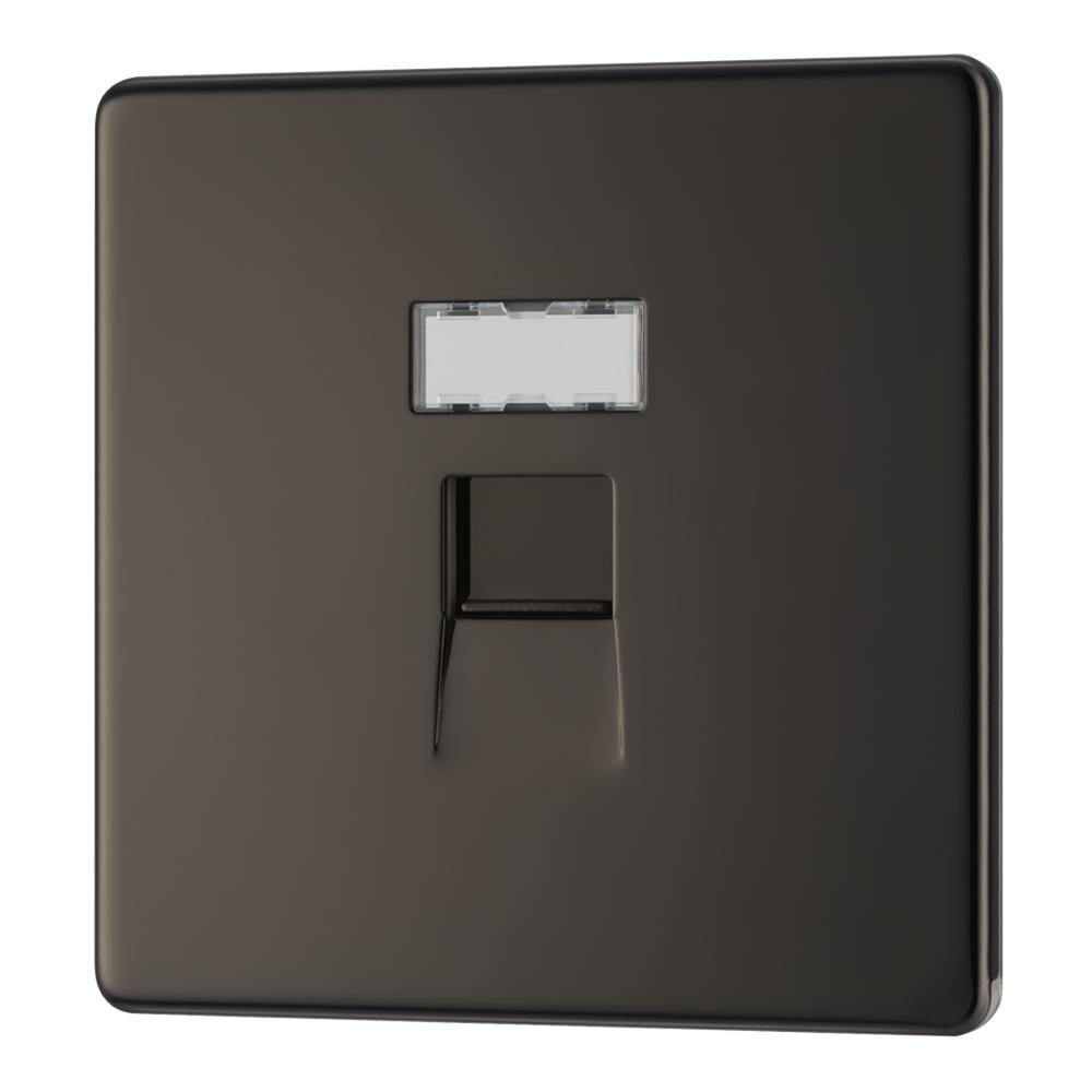 BG FBNRJ451 1 Gang RJ45 Data Outlet Socket with Idc Window - Screwless Flatplate - Black Nickel