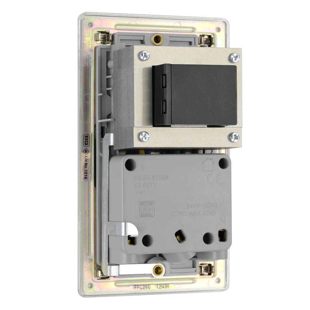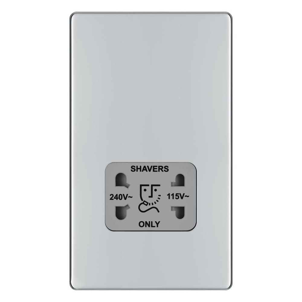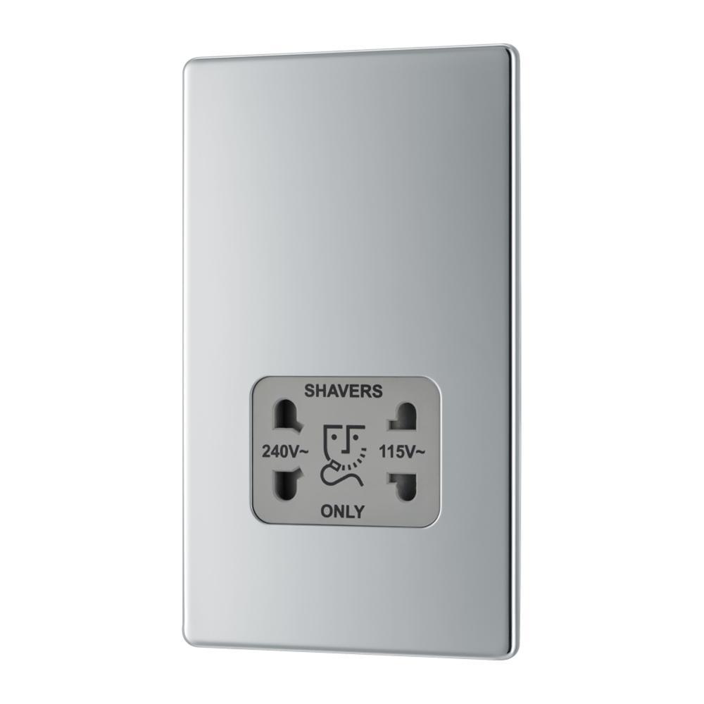BG FPC20G-01 Shaver Socket 115/230V Dual Volt Grey Surround - Screwless Flatplate - Polished Chrome