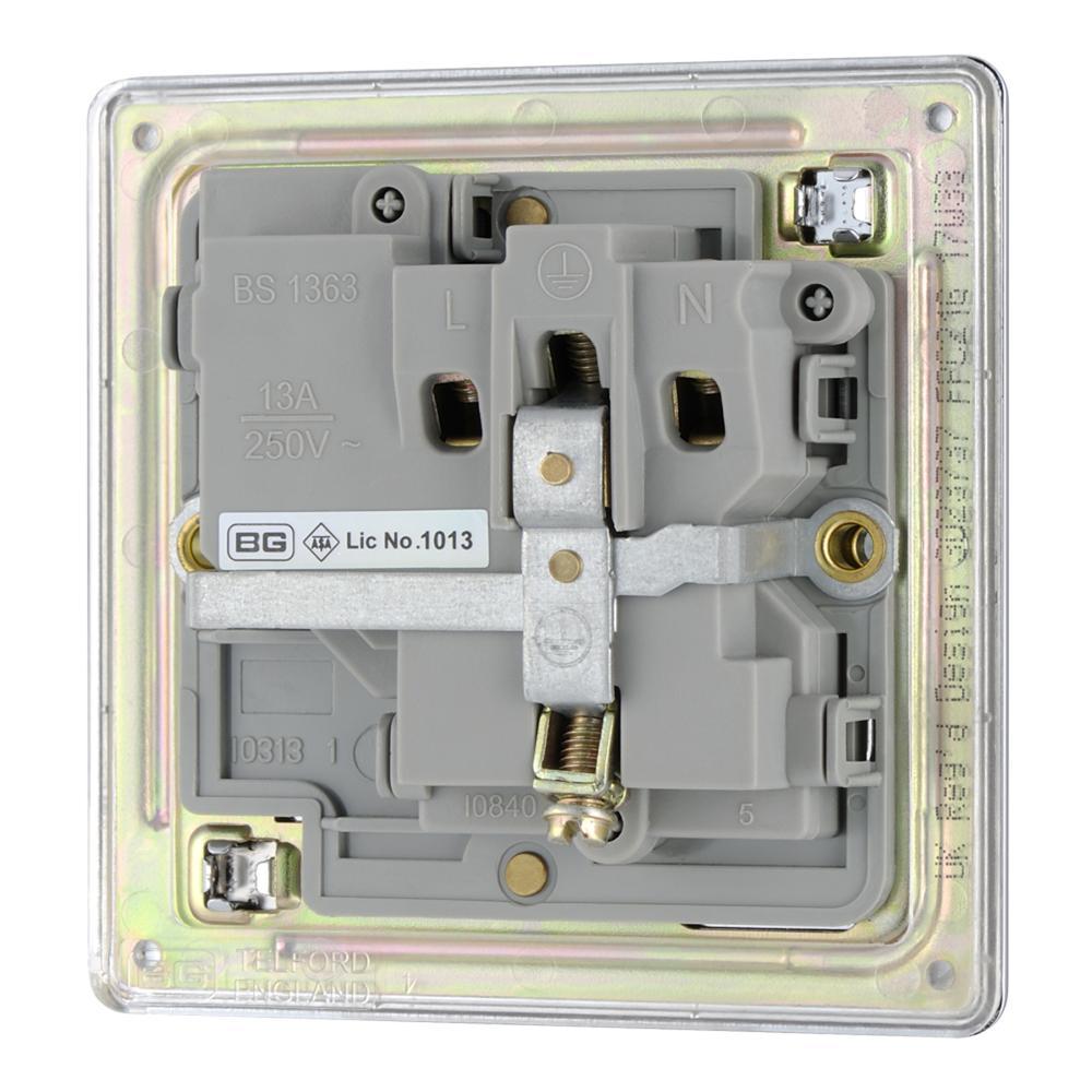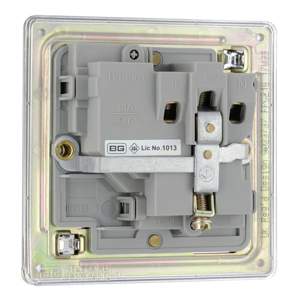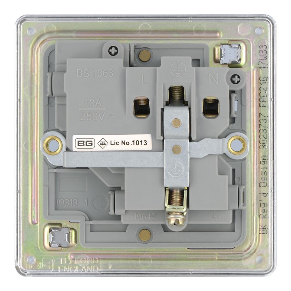 BG FPC21G-01 13A 1 Gang Double Pole Switched Socket Grey Surround - Screwless Flatplate - Polished Chrome