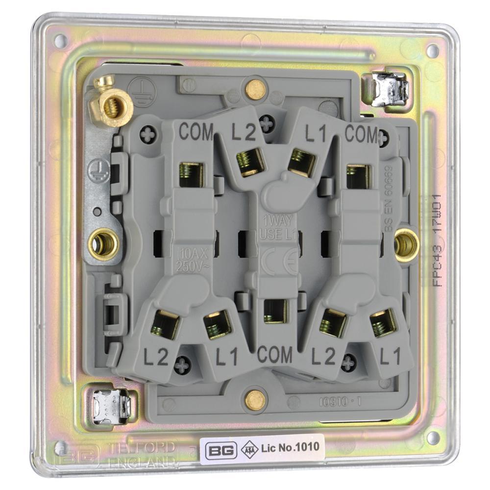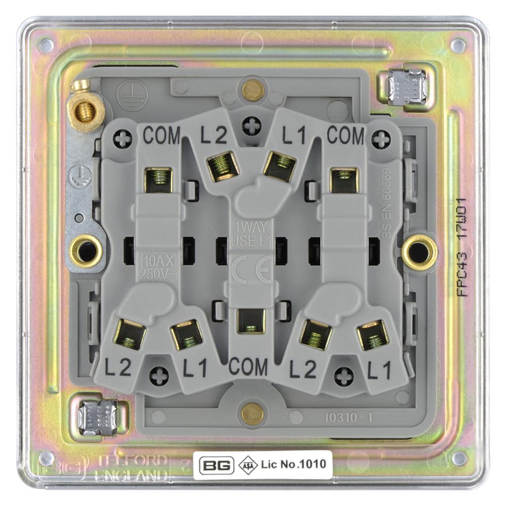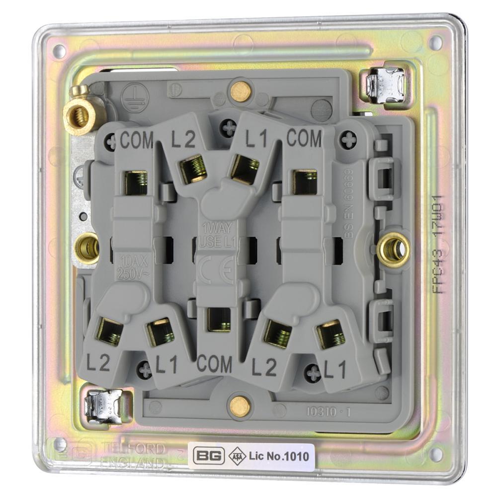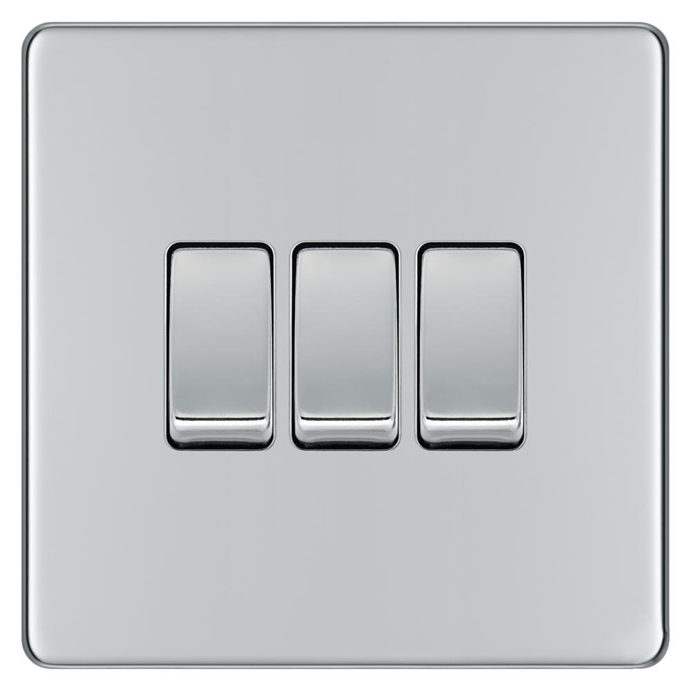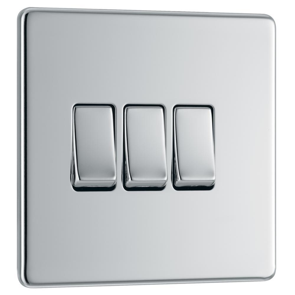 BG FPC43-01 10AX 3 Gang 2 Way Plate Switch - Screwless Flatplate - Polished Chrome