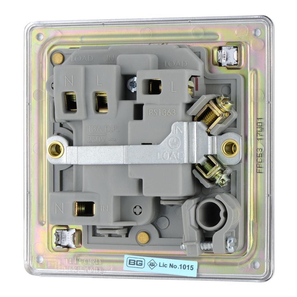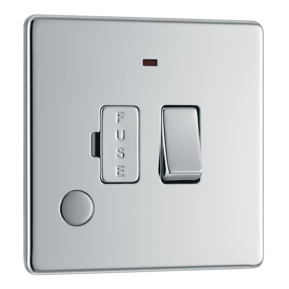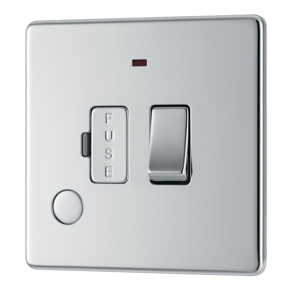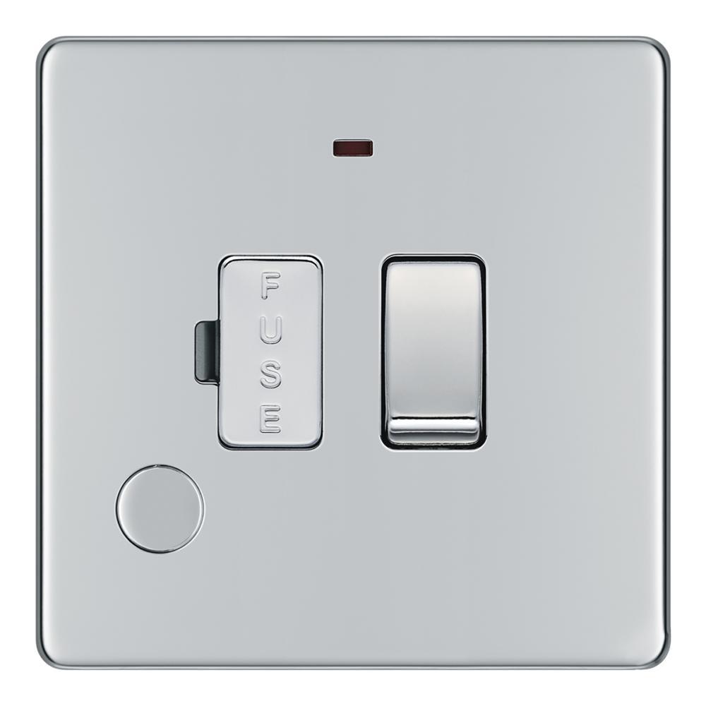 BG FPC53-01 13A Fused Connection Unit Switched with Power Indicator Flex Outlet - Screwless Flatplate - Polished Chrome