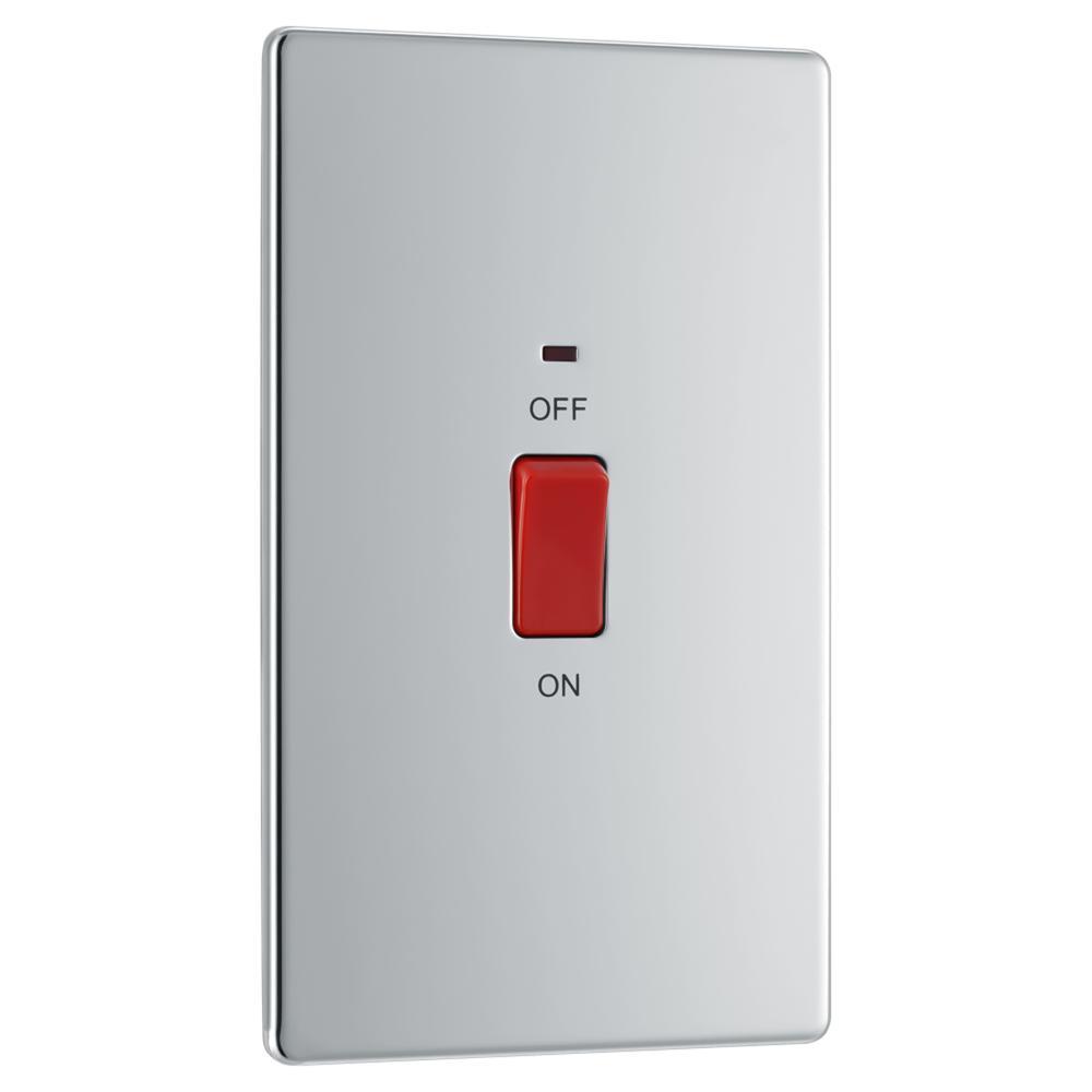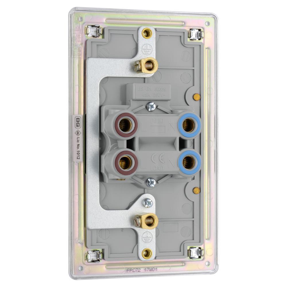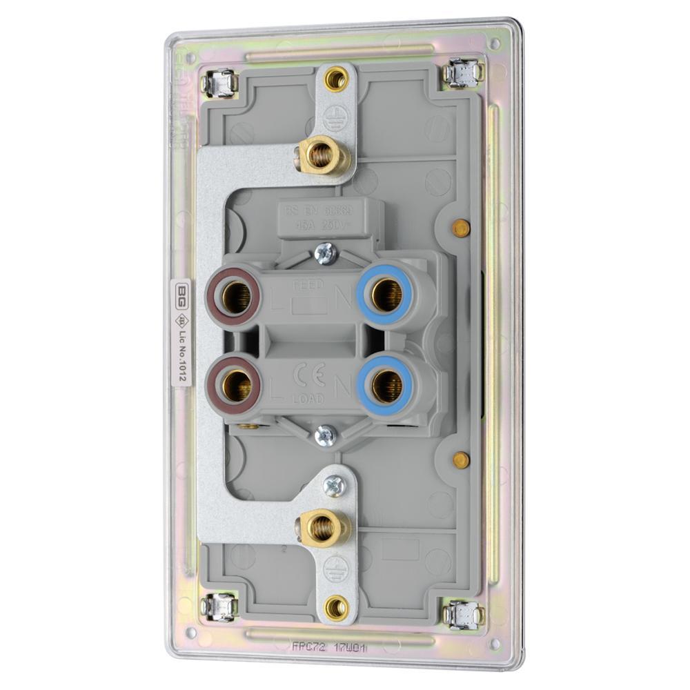 BG FPC72-01 45A Double Pole Switch with Indicator Double Plate - Screwless Flatplate - Polished Chrome