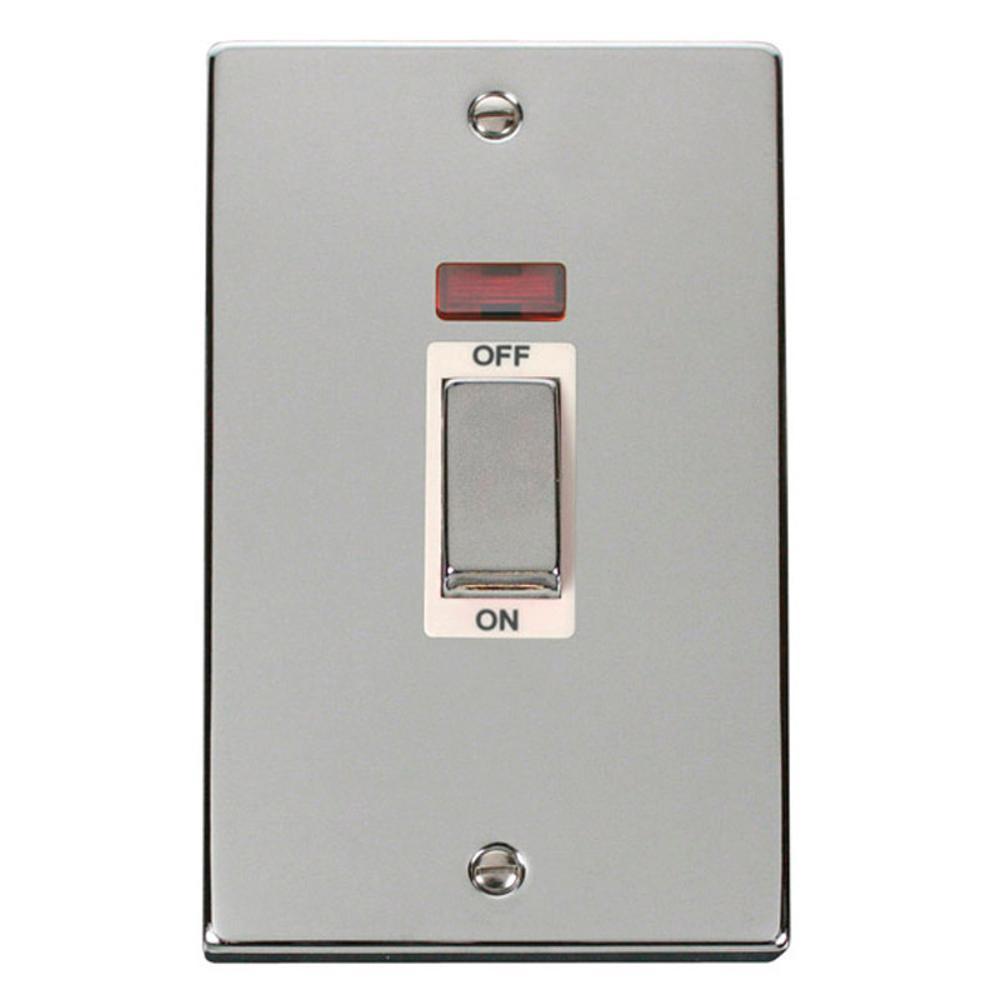 Click Polished Chrome 2 Gang 45A Double Pole Switch With Neon - VPCH503WH