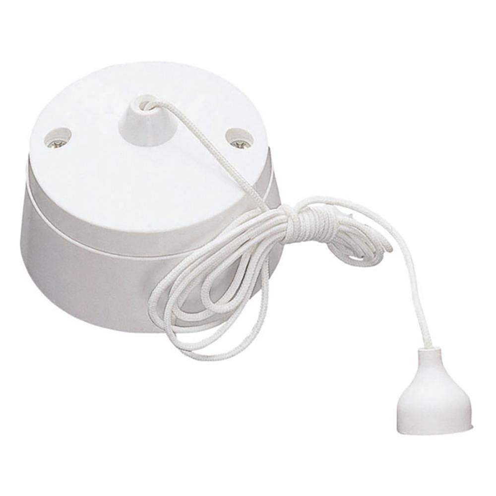 - 1 x 2 way pull cord switch made from durable white plastic. It is particularly useful for installations in bathrooms as it can be used safely with wet hands and is manufactured to BS EN 60669 and 10Ax rated