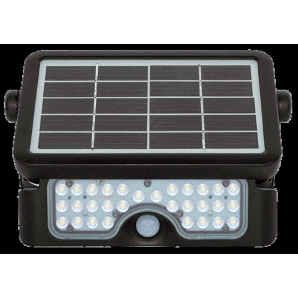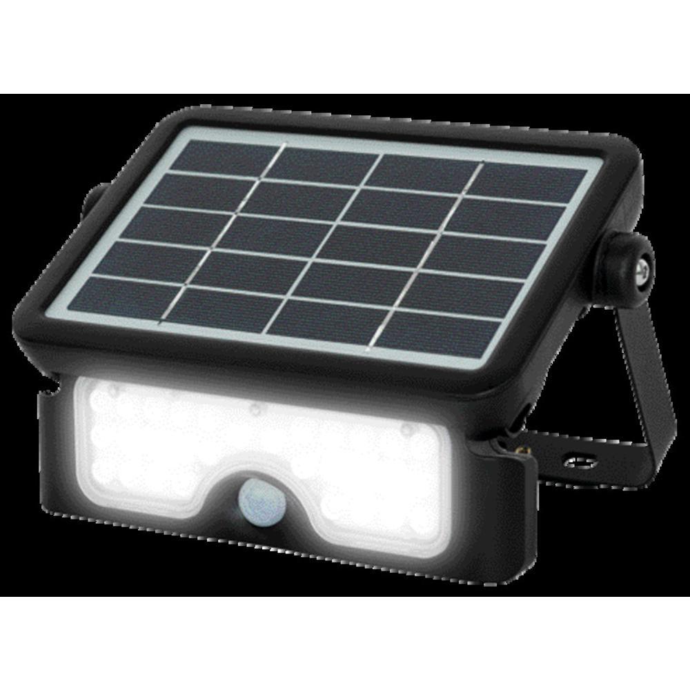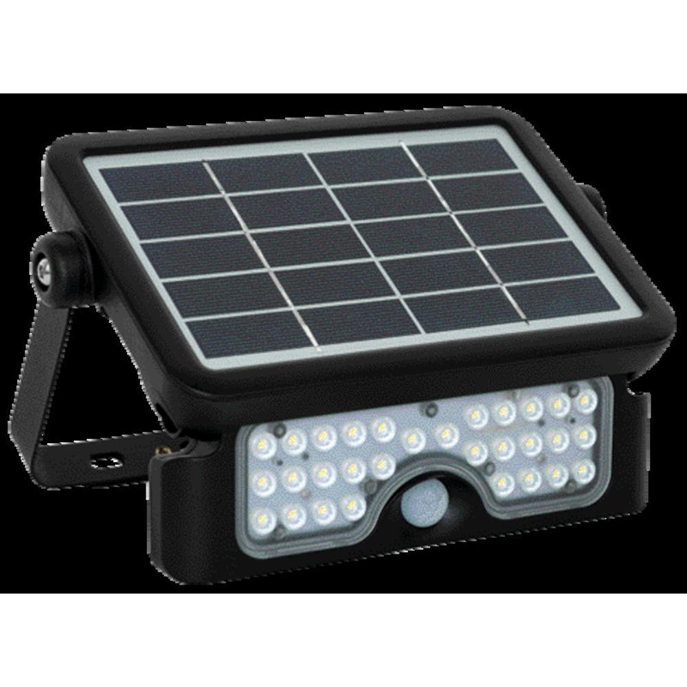 Luceco 5W Solar Guardian Floodlight with PIR motion sensor and stand bracket.