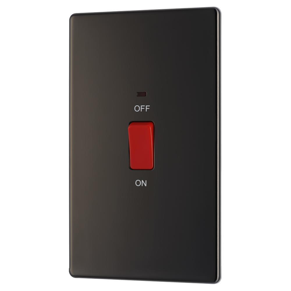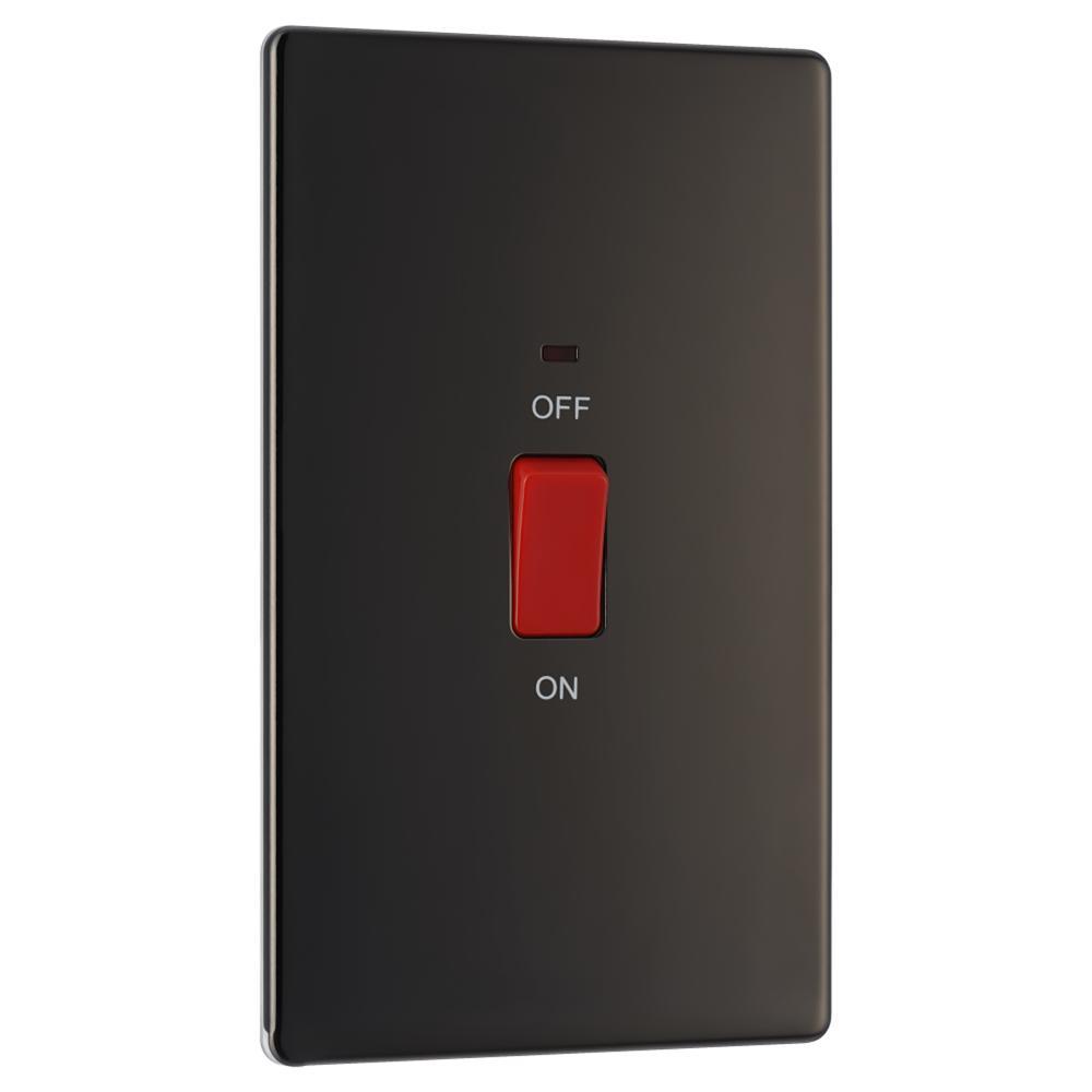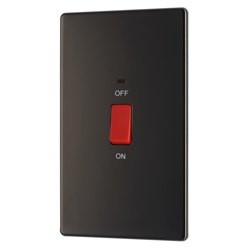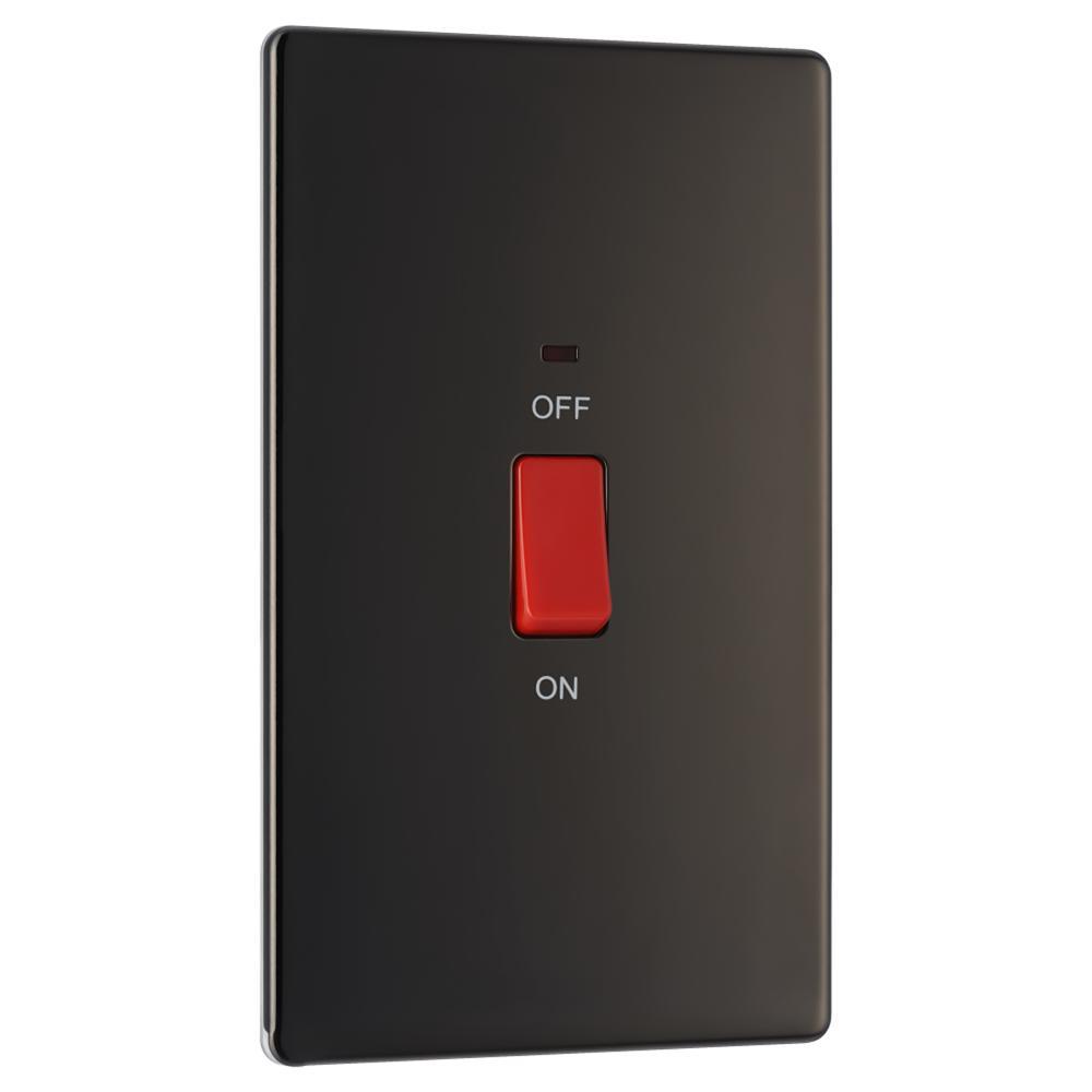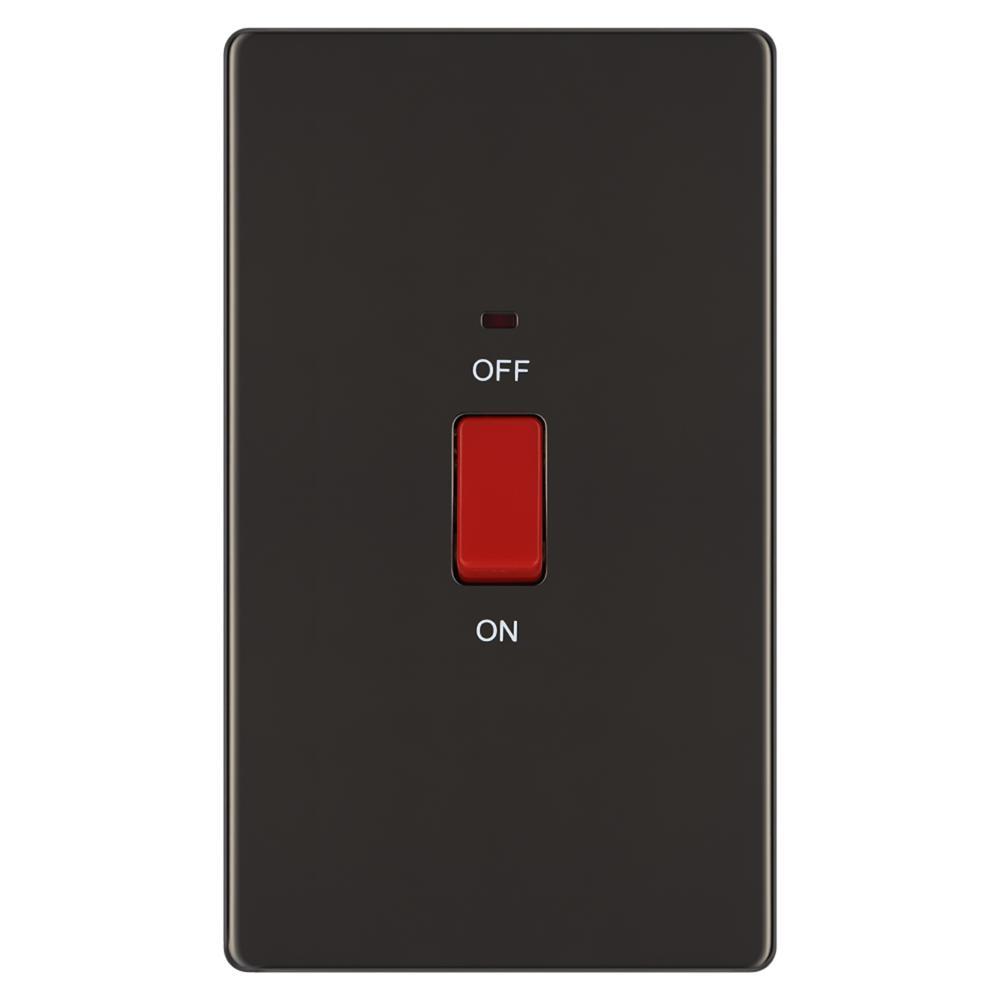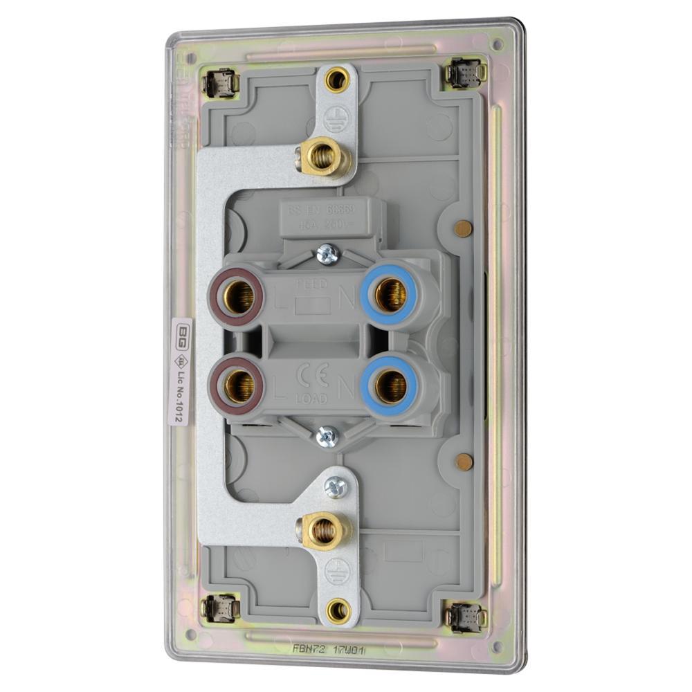 BG FBN72-01 45A Double Pole Switch with Indicator Double Plate - Screwless Flatplate - Black Nickel