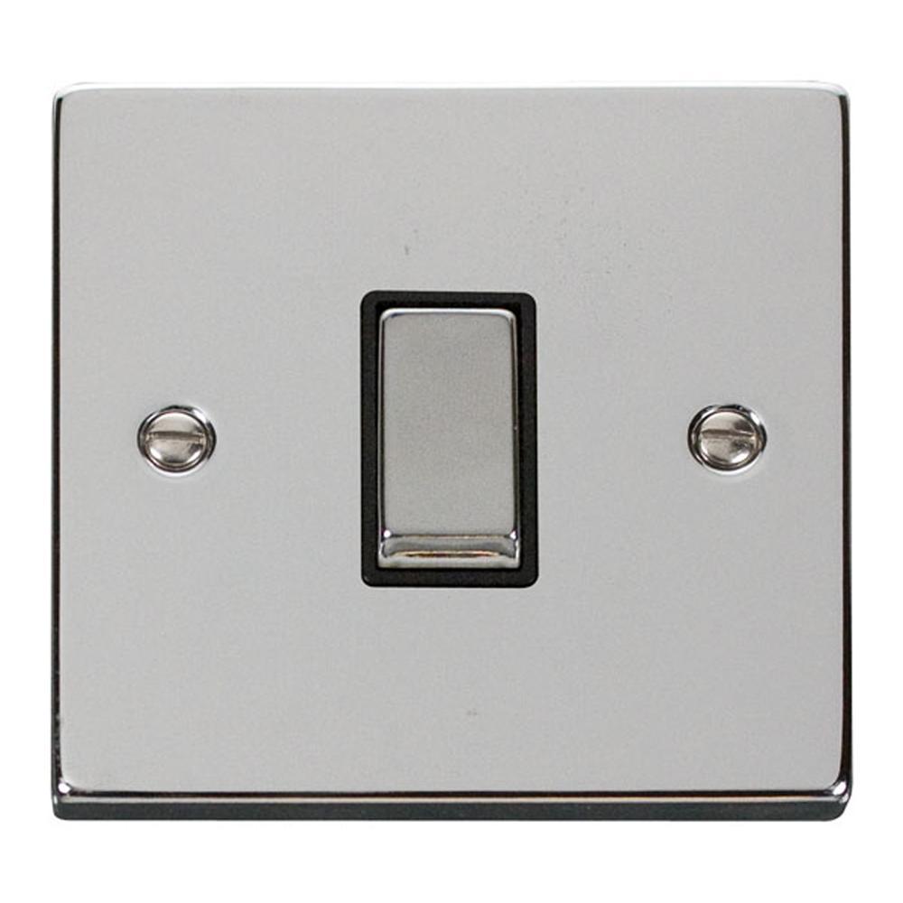 Click Deco VPCH411BK 10AX Ingot 1 Gang 2 Way Plate Switch - Black - Polished Chrome