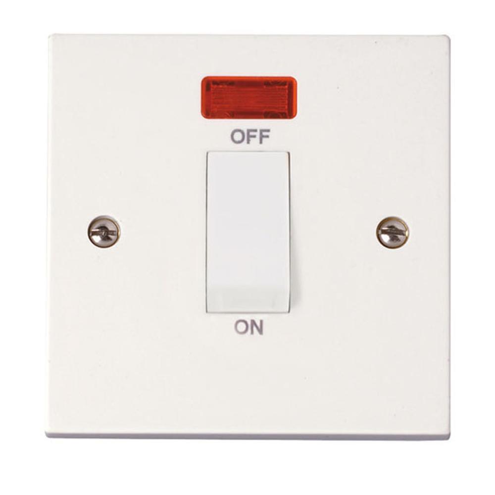 Polar 45A 1 Gang Dp Switch with White Rocker & Neon.