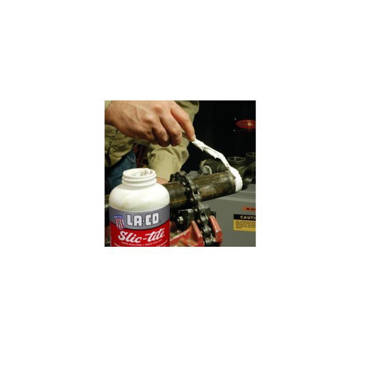 The LA-CO Slic-Tite paste is a heavy duty pipe thread compound that is formulated with PTFE, to give it an additional sealing strength and makes Slic-Tite the premium thread sealant paste. It can be used to seal water, air, steam, natural gas, and more. Perfectly functional in extremely high-pressure systems and will adhere well to hot or oily threads. Slic-Tite removes easily from skin and clothing, reducing post-job cleanup time.