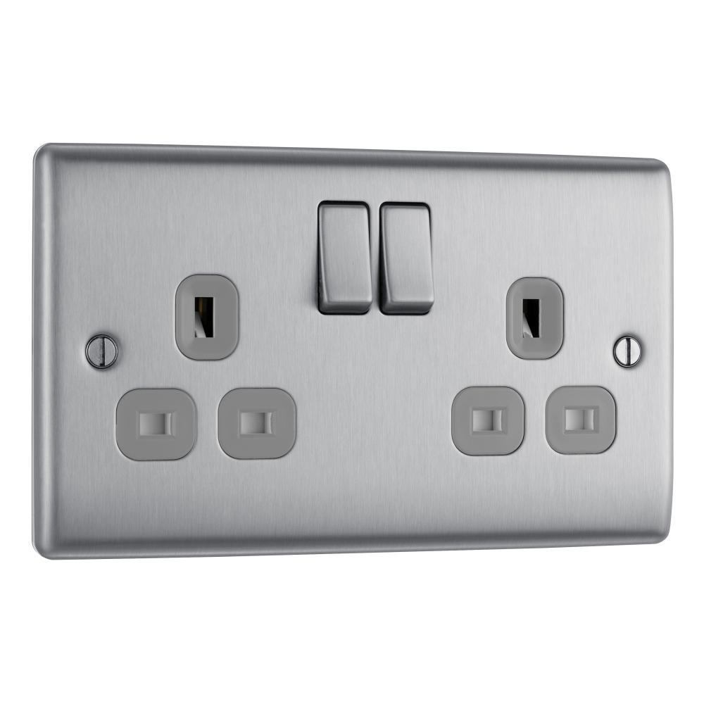 The BG Brushed Steel 13A Double Socket - NBS22G Is Part Of The Premium Metal Accessories Range From BG Nexus With No Visible Plastic Around The Switches And A Modern Slim Profile Giving A Superior Quality Finish That Will Compliment Any Interior Decor. The Range Also Features A Lightly Lacquered Surface Which Helps To Reduce Those Annoying Fingerprints.
