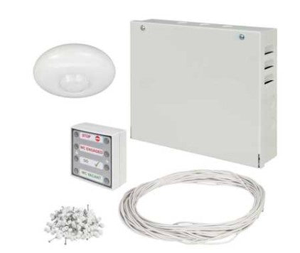 - Comprises of a main control unit, 360° PIR, door contact, red and green indicators, low voltage cable and clips