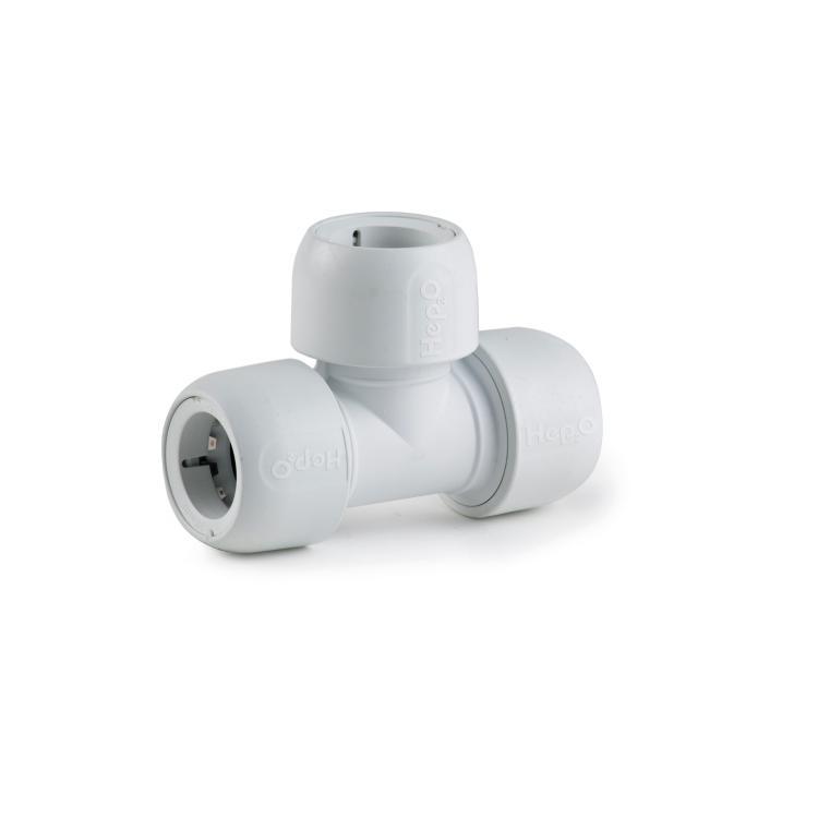 The Hep2O equal tee is a flexible push-fit fitting that has been developed with a number of unique features. This spigot has the In4Sure joint recognition technology to provide a secure joint every time. Comes with a colour-coded packaging for easy identification - green 10mm, blue 15mm, purple 22mm and orange 28mm.
