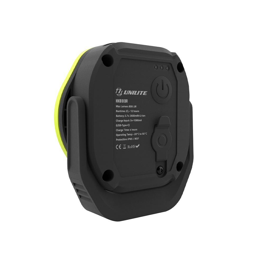 The HX800R is a compact USB Rechargeable LED Worklight with an 800 lumen output. Its dual LEDs provides both a flood and focused spot beam. Housed in tough nylon-polymer, its compact design features a 180° rotating magnetic base. An IP65 rating ensures ingress against both dust and water.