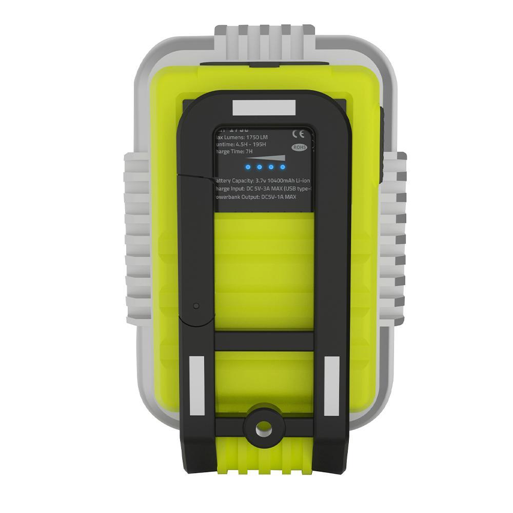 The SLR-1750 is a compact USB rechargeable Power Bank Site Light with an ultra bright 1750 lumen output. Its folding 180° stand contains a useful carabiner hook and tripod mount along with strong integral magnets. Additional red LED functions can be used for signalling or emergencies and a USB power bank allows effective charging of small devices. An IPX5 rating also ensures high water resistance.